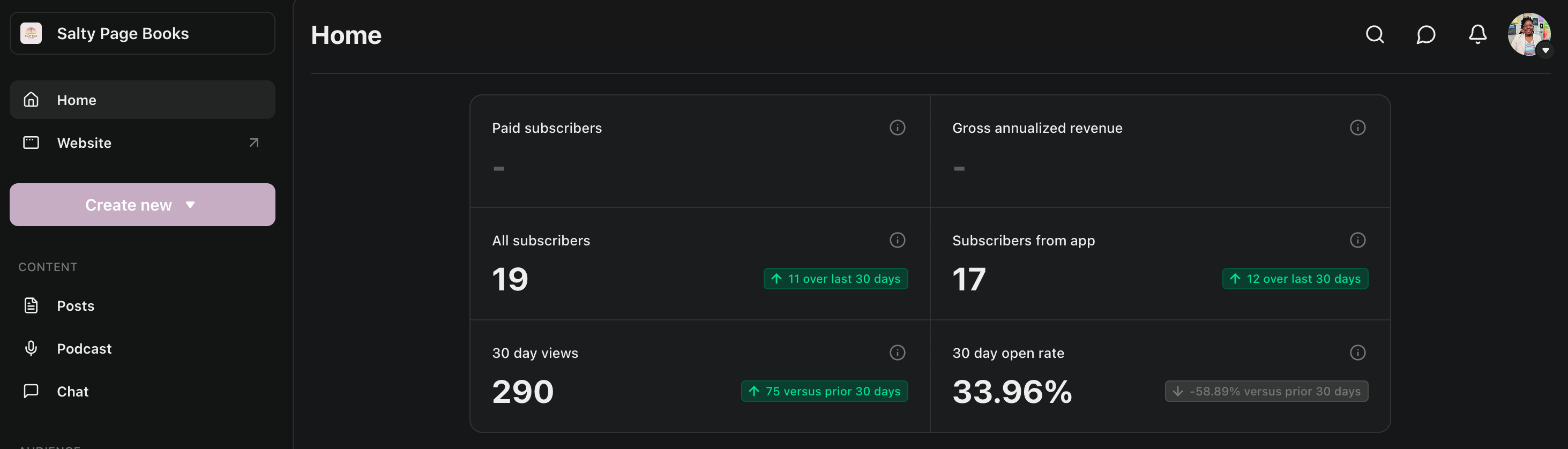 19 free subscribers (up by 11 over the past 30 days)